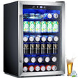 Joy Pebble Beverage Refrigerator and Cooler,145 Can Beverage Fridge with Adjustable Thermostat, Black Mini Fridge with Silver Glass Door for Beer Soda Wine, Beer Fridge for Bar Home Office,4.4Cu.Ft