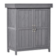 Outsunny Wooden Garden Storage Shed with Hinged Roof and Shelves, Outdoor Storage Cabinet Chest, Double Doors, 74 x 43 x 88cm, Grey
